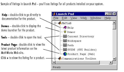 - Type help browser in the Command Window, or use the Help menu in any tool. There are two panes: