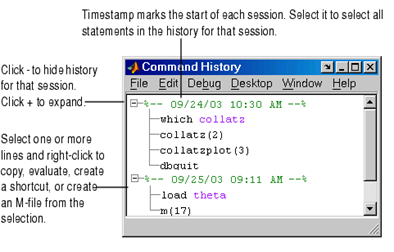 Command history is to the left side of the command window, used to display the statements which you run in the previous and current session. Which stores a maximum of 20,000 bytes it delete the oldest statements when it more than 20,000 bytes.