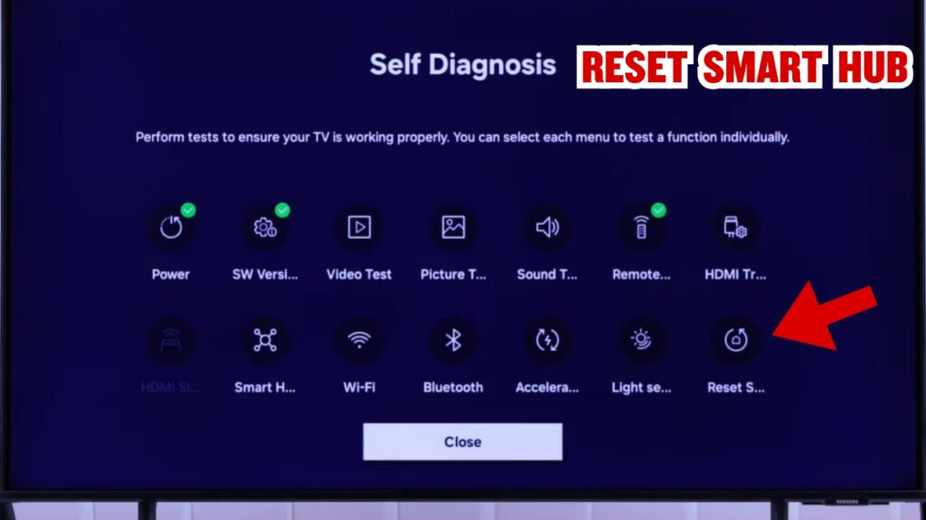 - Action: Go to Settings > Support > Self Diagnosis > Reset Smart Hub. This resets the app layer without deleting your picture settings.